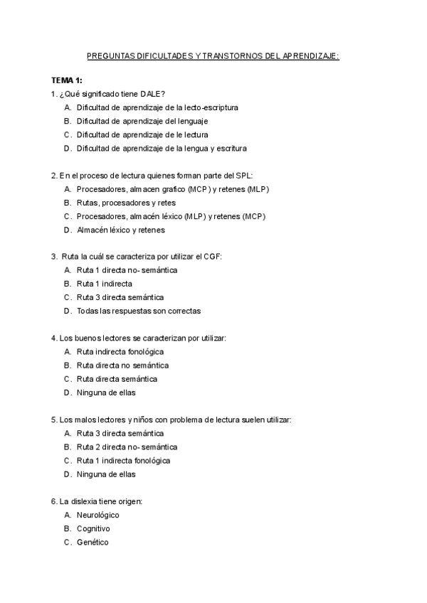 He publicado nuevos examenes de 2º Dificultades de Aprendizaje y Trastornos del Desarrollo: preguntas-DIFICUL-APR-Y-TRAST-DLLO.pdf