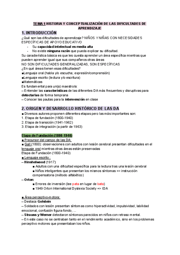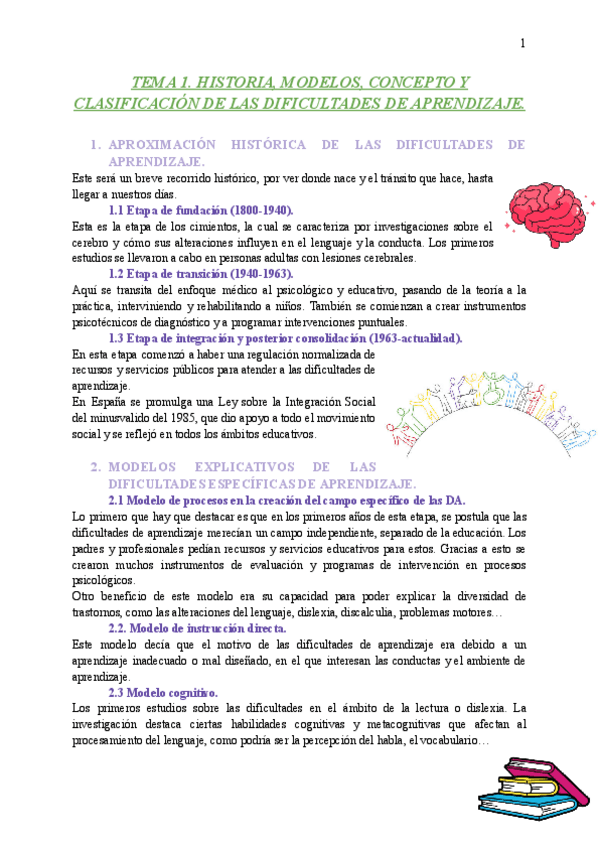 Tema 1. Historia, modelos, concepto y clasificación de las dificultades de aprendizaje