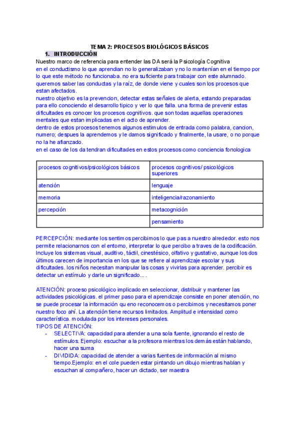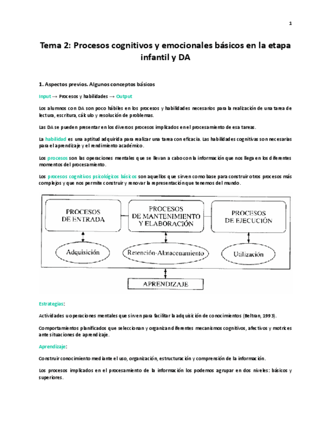 Tema 2. Procesos cognitivos y emocionales básicos en la etapa infantil y DA