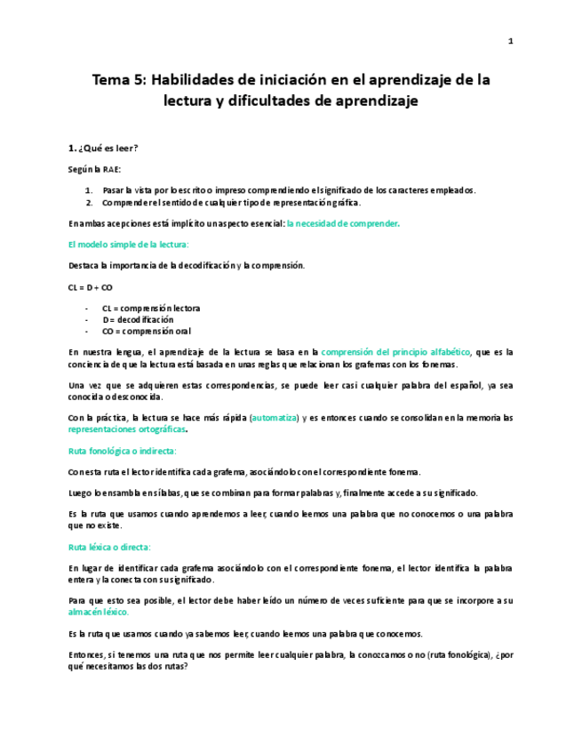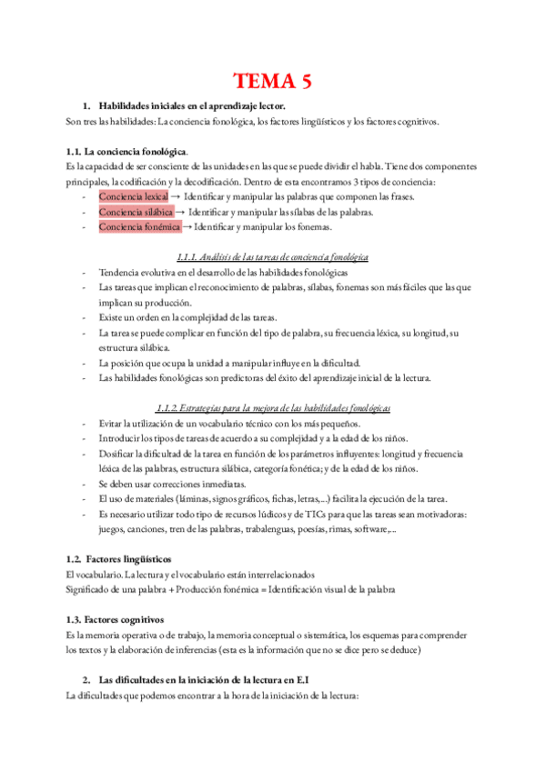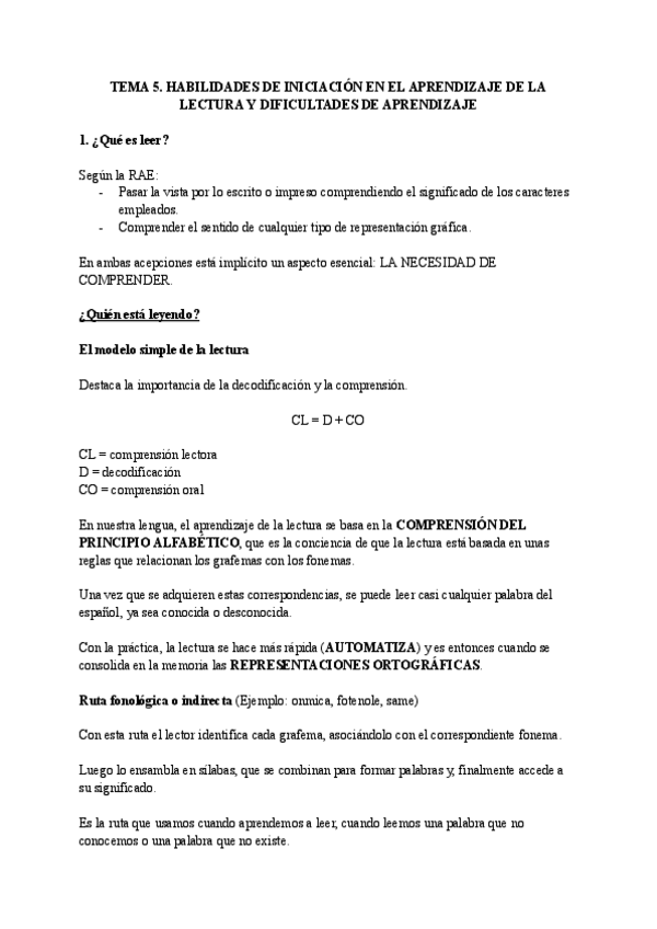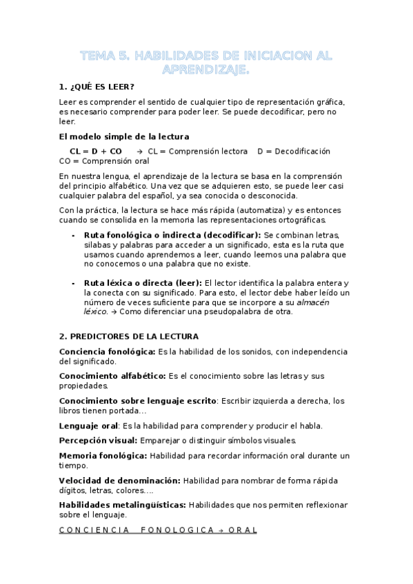 Tema 5. Habilidades de iniciación en el aprendizaje de la lectura y dificultades de aprendizaje