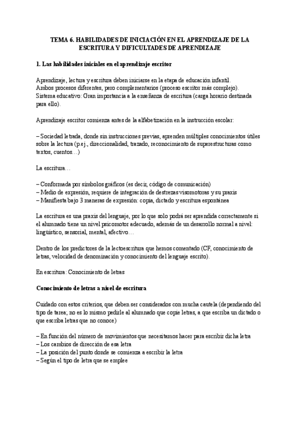 Tema 6. Habilidades de iniciación en el aprendizaje de la escritura y dificultades de aprendizaje