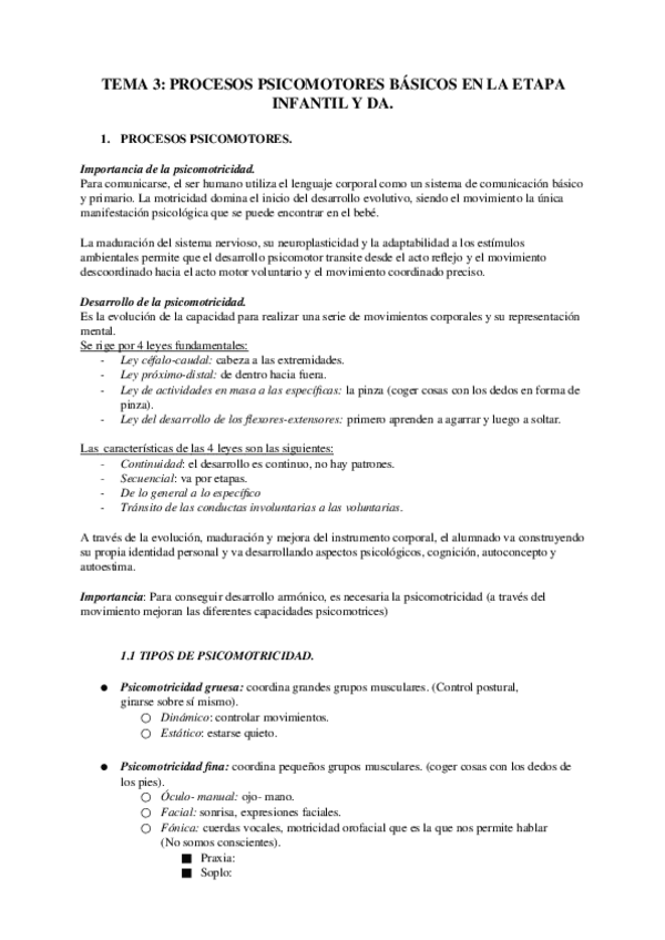 Tema 3. Procesos psicomotores básicos en la etapa infantil y DA