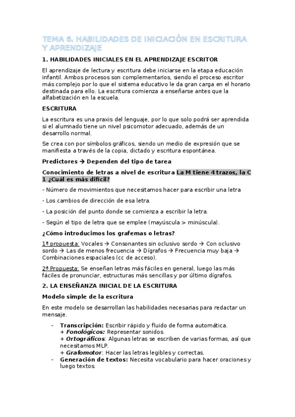 Tema 6. Habilidades de iniciación en el aprendizaje de la escritura y dificultades de aprendizaje