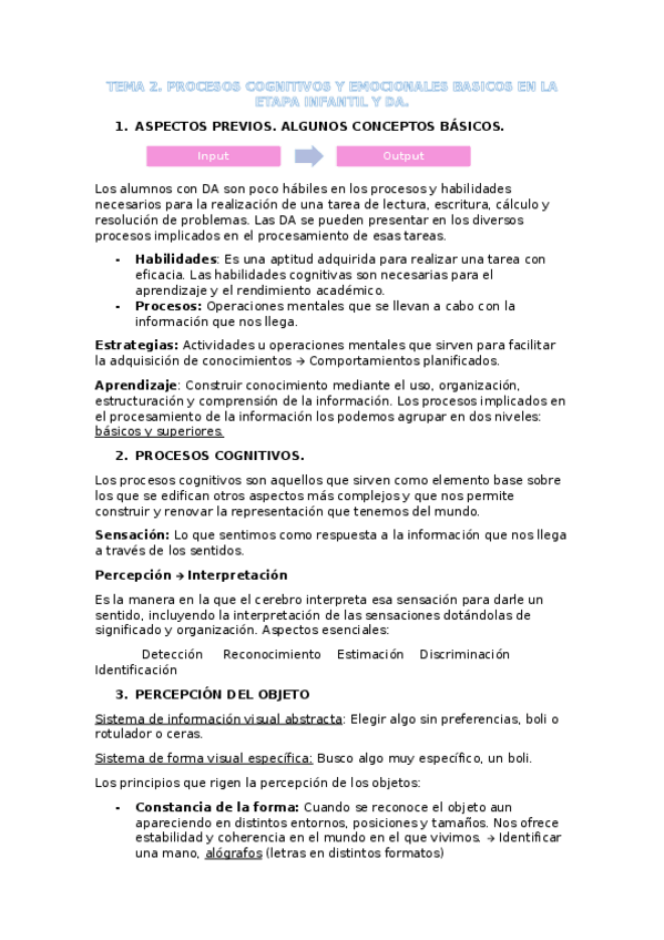 Tema 2. Procesos cognitivos y emocionales básicos en la etapa infantil y DA
