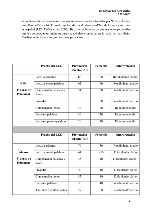 He publicado nuevos ejercicios de 3º Dificultades de Aprendizaje: Interpretando-baremos.pdf