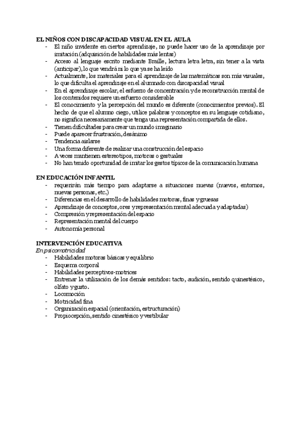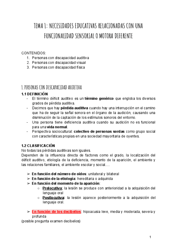 Resumen tema 1: Necesidades educativas relacionadas con una funcionalidad sensorial o motora diferente.