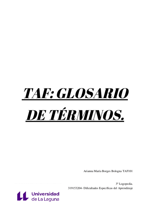 He publicado nuevos apuntes de 3º Dificultades Específicas del Aprendizaje: Glosario-DEA-Arianna-Borges-TAF101.docx