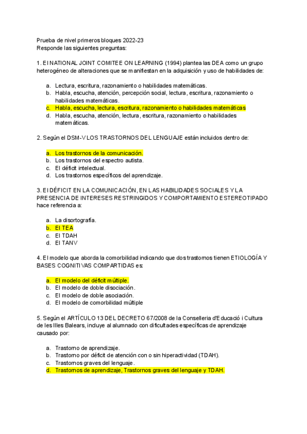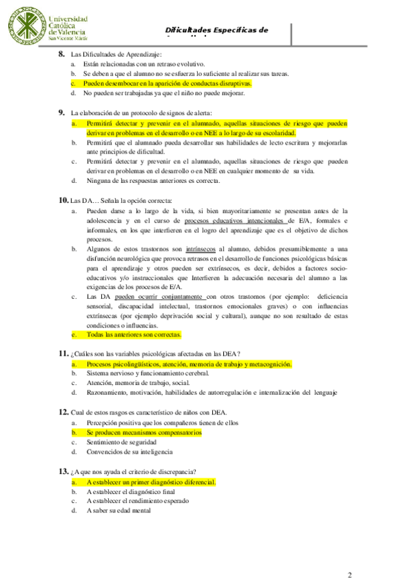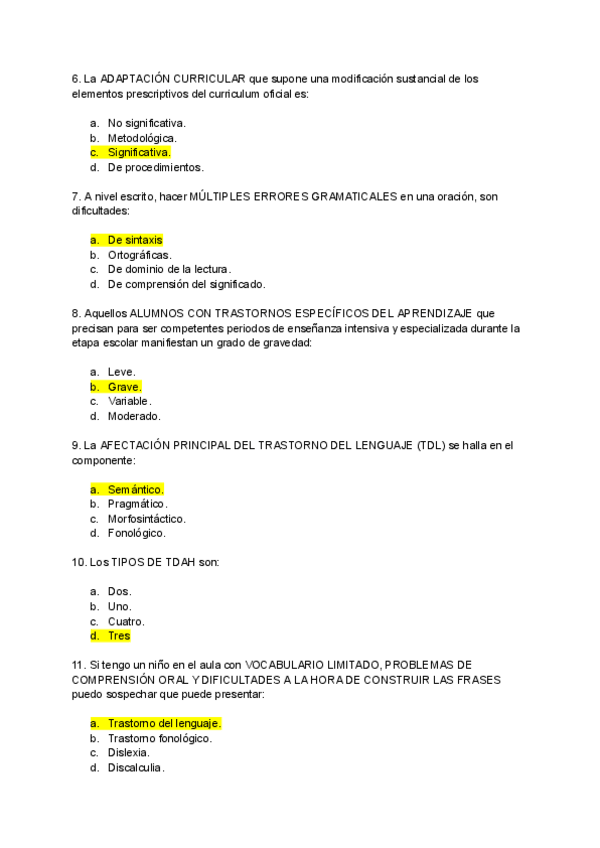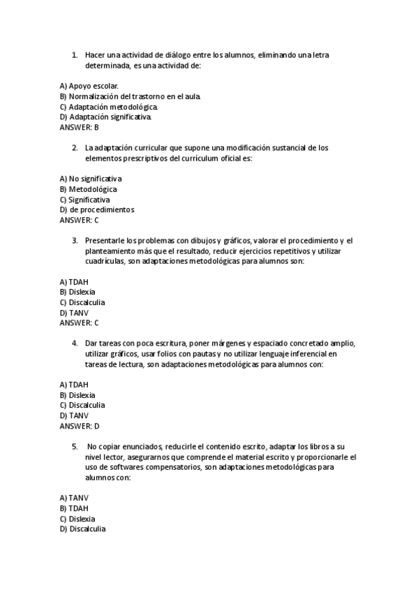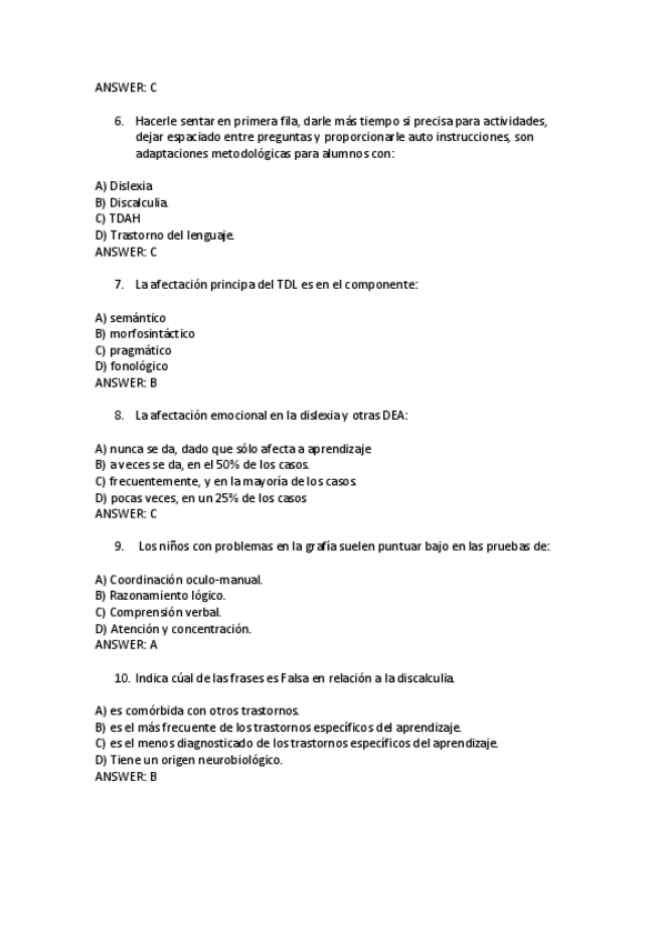 He publicado nuevos examenes de 2º Dificultades Específicas del Aprendizaje: Preguntas-examen-dificultades.pdf