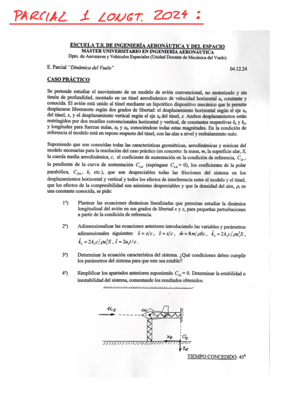 He publicado nuevos examenes de 1º Dinámica del Vuelo: ParcialLong2324.pdf