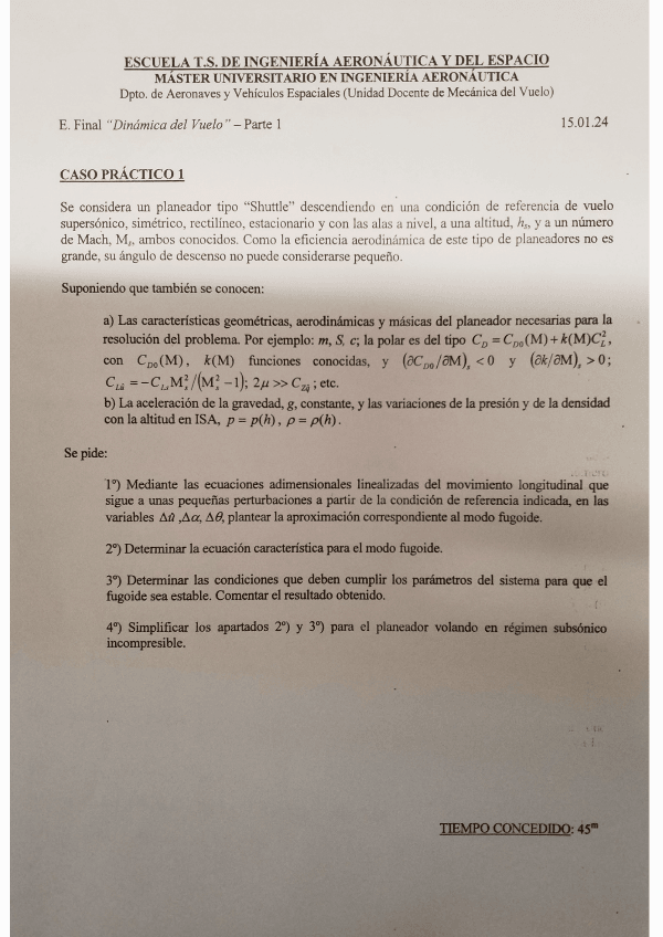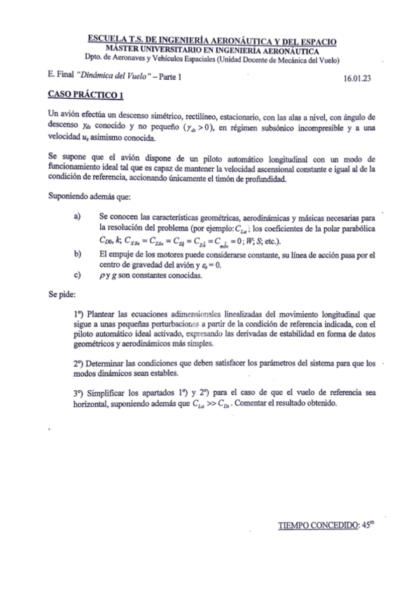 He publicado nuevos examenes de 1º Dinámica del Vuelo: Parcial-Noviembre-2022-Caso-Practico-Longitudinal-Resuelto-a-Mano.pdf