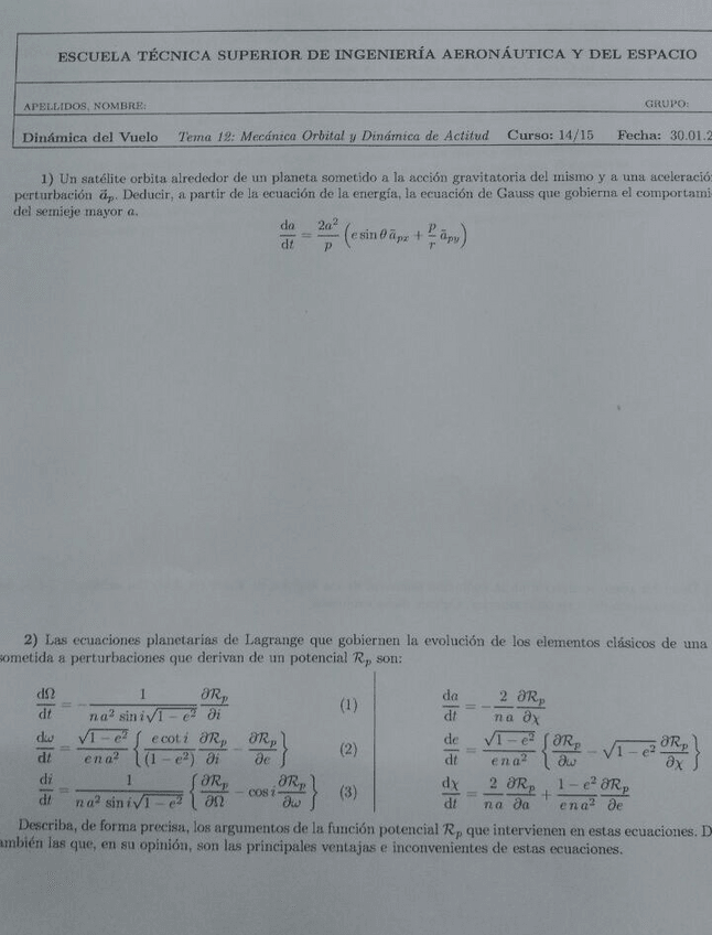 He publicado nuevos examenes de 1º Dinámica del Vuelo: Orbital: Ejercicios y Exámenes por temas