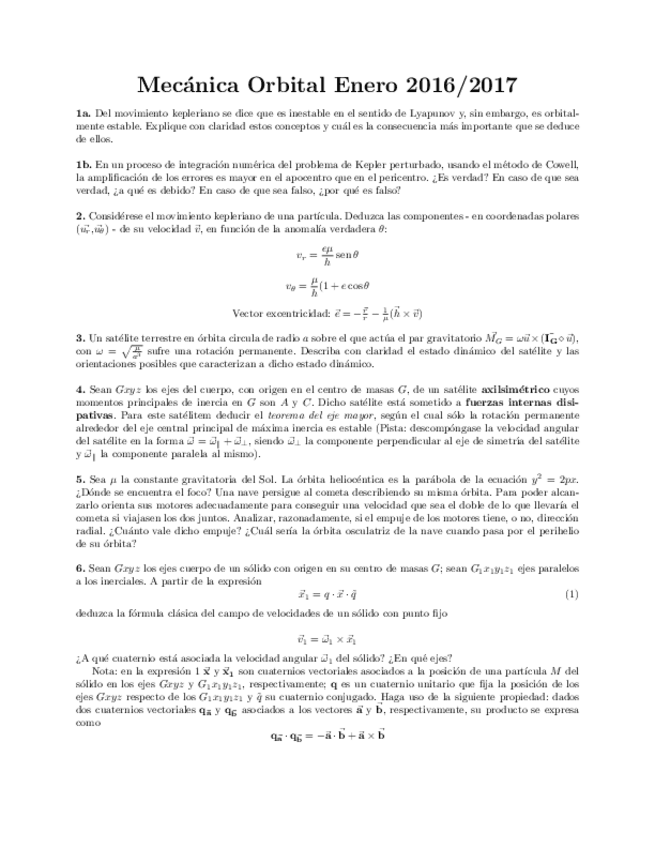 Exámenes parte Mecánica Orbital