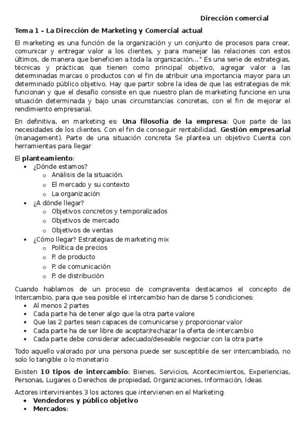 Apuntes de Dirección Comercial realizados con las diapositivas de clase.