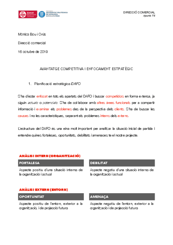 He publicado nuevos apuntes de 2º Dirección Comercial I: Direcció Comercial I