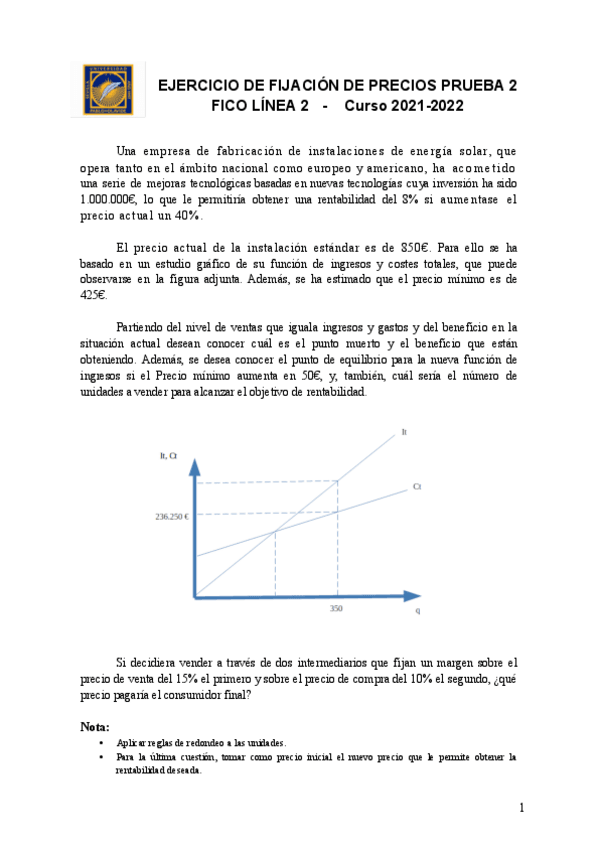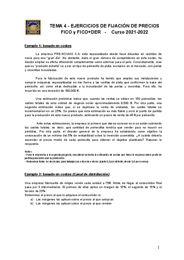 Ejercicios Fijación de Precios Dirección Comercial