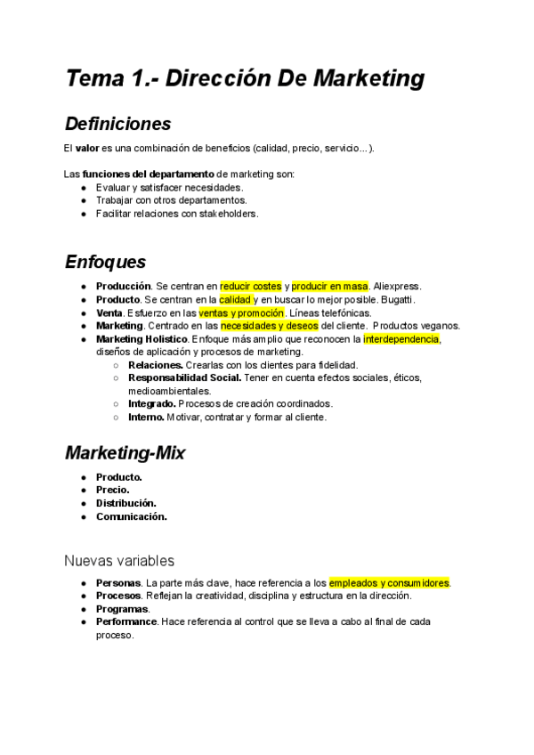 Apuntes tema 1. La dirección de marketing