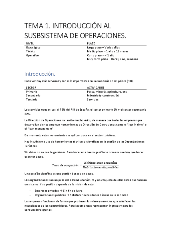 Apuntes de los temas 1 y 2 de direccion de operaciones en organizaciones turísticas