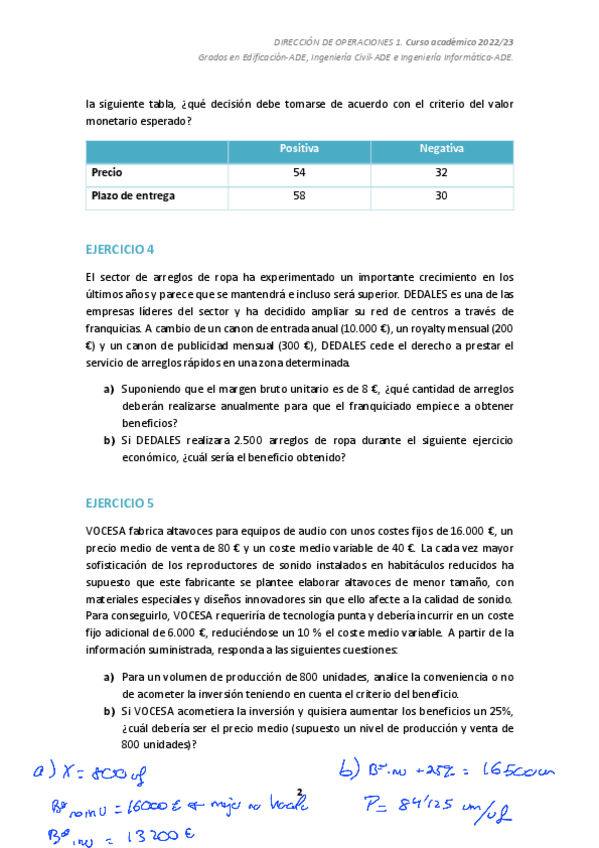 He publicado nuevos ejercicios de 4º Dirección de Operaciones I: 04Ejercicios-T4-22-23.pdf