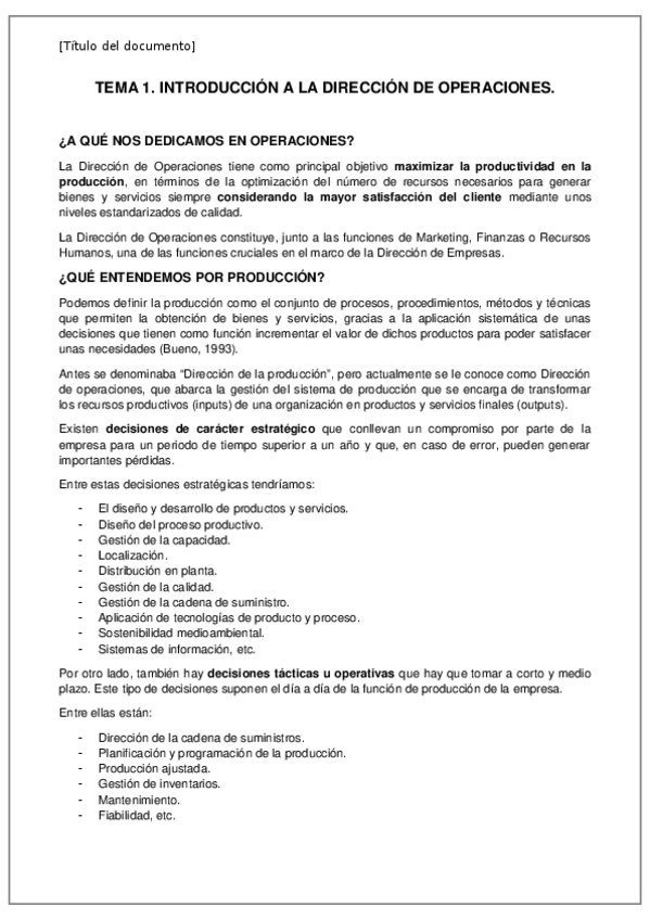 He publicado nuevos apuntes de 4º Dirección de Operaciones I: Temario
