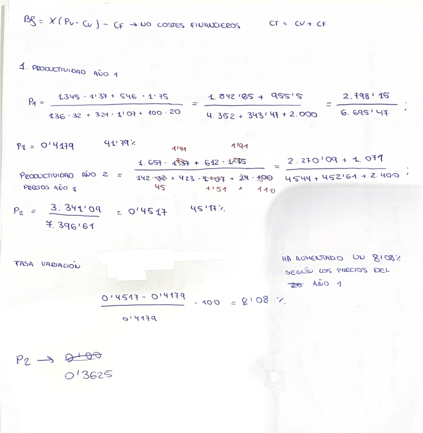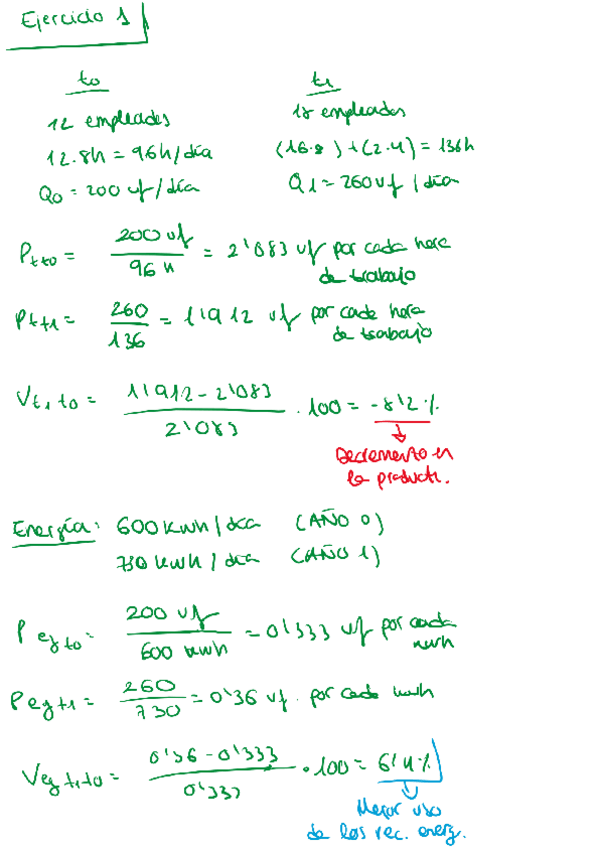 Ejercicios de productividad corregidos por el profesor en clase