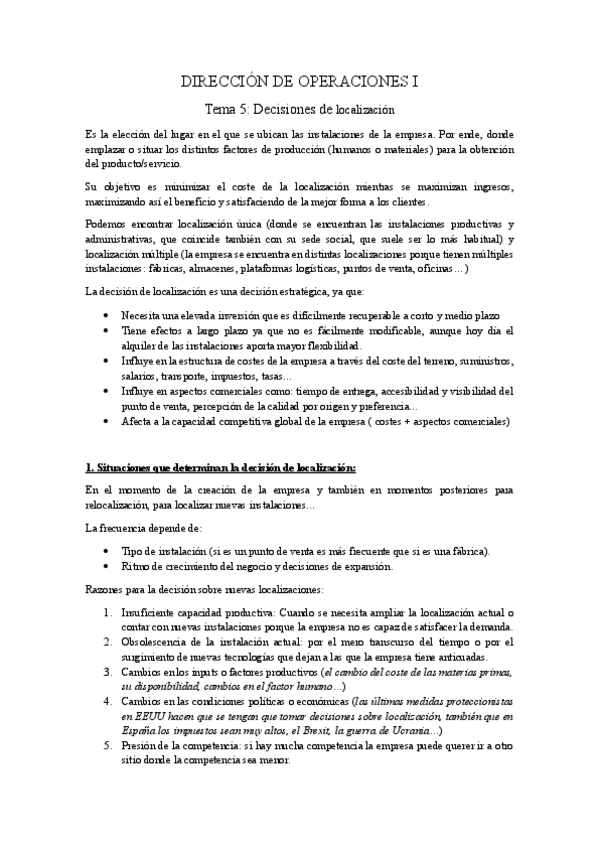He publicado nuevos apuntes de 3º Dirección de Operaciones I: Tema-5 decisiones de localización.pdf
