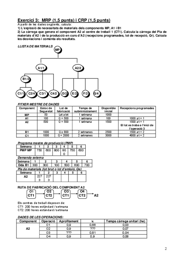 He publicado nuevos ejercicios de 2º Dirección de Operaciones: Activitats