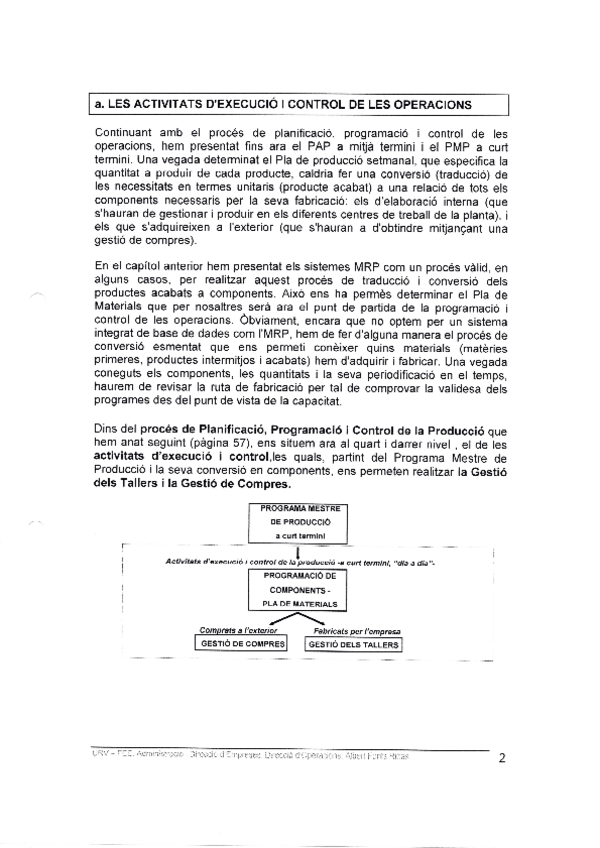 Apuntes del curso 2014/2015 de la URV. TEMA 1. El diseny del subsistema d'operacions TEMA 2. La planificació de les operacions TEMA 3. Els sistemes de planificació i gestió d'inventaris TEMA 4. Programació i control de les operacions TEMA 5. La gestió de