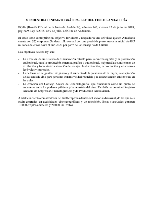 He publicado nuevos apuntes de 2º Dirección de proyectos audiovisuales: TEMA8LEYDELCINEANDALUCIA.pdf