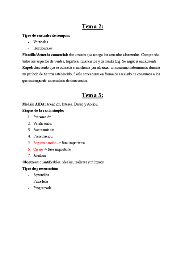 Las cosas en rojo entran en el examen, mencionado por el profesor