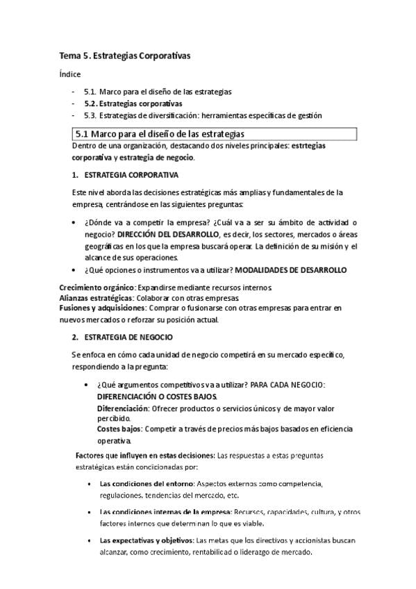 Apuntes de los temas 1, 2, 3, 4 y 5 de Dirección Estratégica de la Empresa.