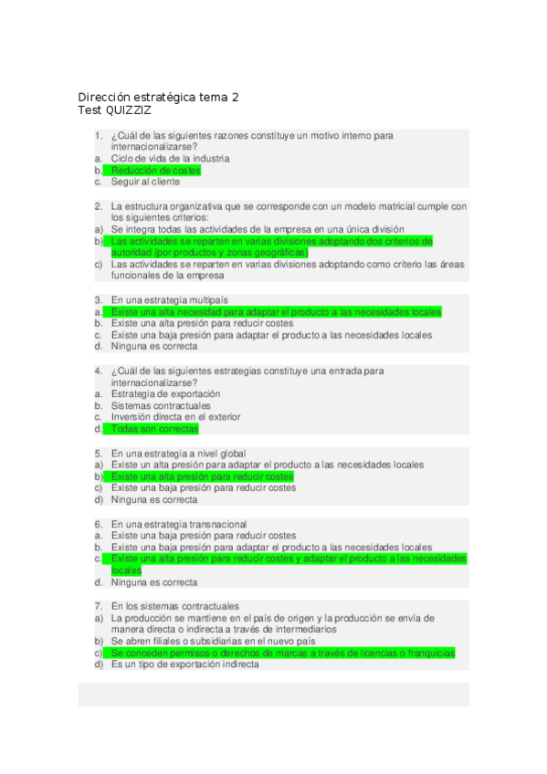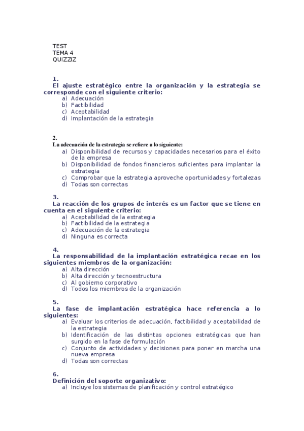 He publicado nuevos test de 3º Dirección Estratégica de la Empresa Ii: test del quizz y final