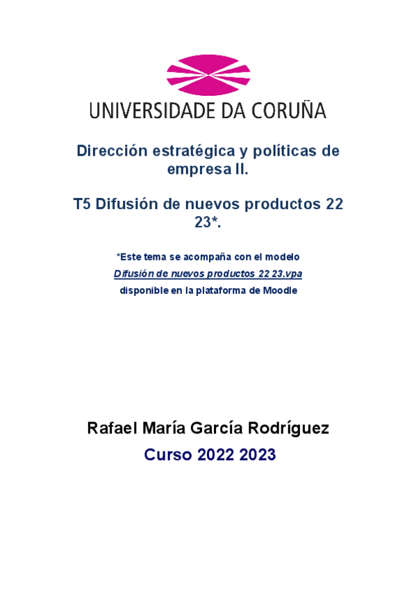 He publicado nuevos apuntes de 4º Dirección Estratégica y Política Empresarial II: T-5-Difusion-de-nuevos-productos-22-23.pdf
