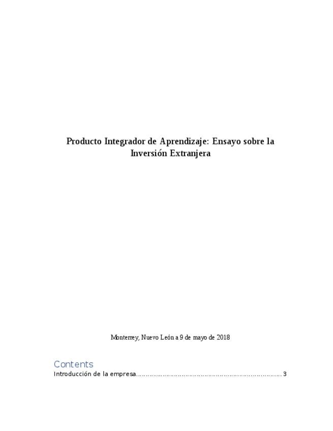Producto Integrador de Aprendizaje: Ensayo sobre la Inversión Extranjera
