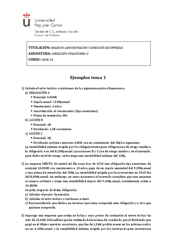 He publicado nuevos ejercicios de 3º Dirección Financiera II: Tema-1-Ejemplos.pdf