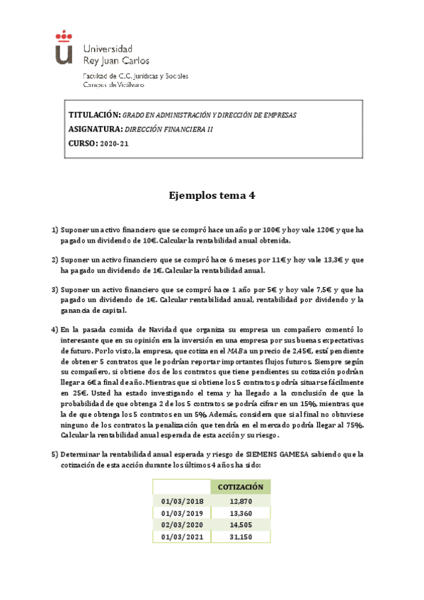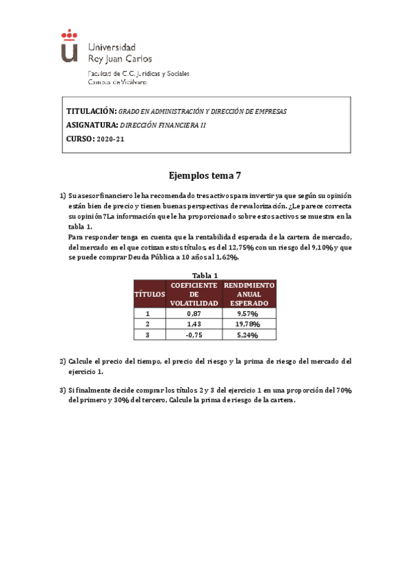 He publicado nuevos ejercicios de 3º Dirección Financiera II: Tema-7-Ejemplos.pdf