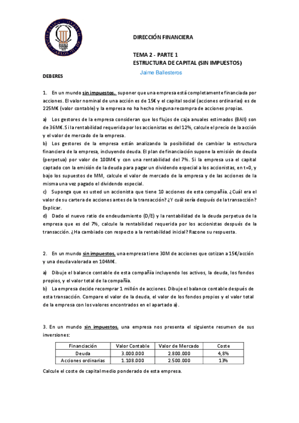 He publicado nuevos apuntes de 3º Dirección Financiera: Homeworks Resueltos