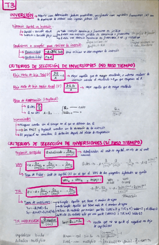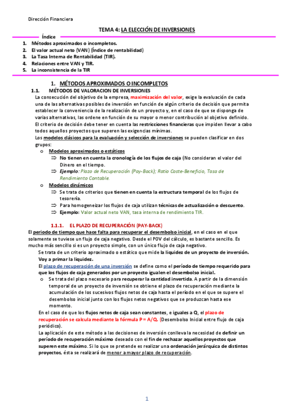Teoría y ejercicios resueltos en clase de Van Tir PayBack Tir ajustada...
