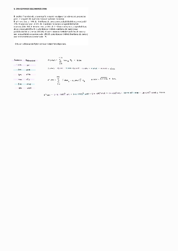 Ejercicio resuelto en clase cálculo de la varianza y desviación típica del Van para el cálculo del riesgo