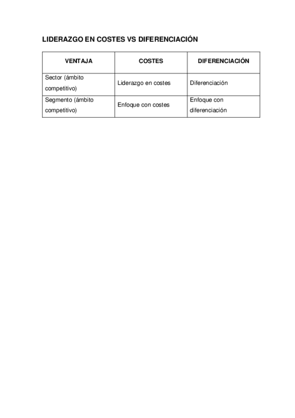 He publicado nuevos apuntes de 2º Dirección General y Estrategia de Empresa: COSTES-VS-DIFERENCIACION.docx