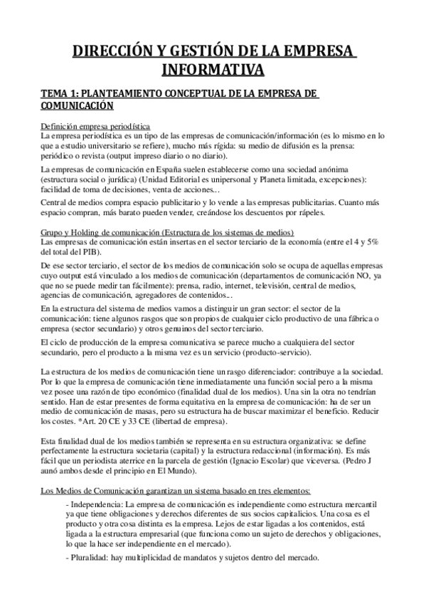 Apuntes Dirección y Gestión de las Empresas Periodísticas