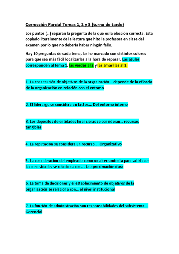 Preguntas y alternativas correctas del primer parcial (temas 1, 2 y 3) del turno de tarde
