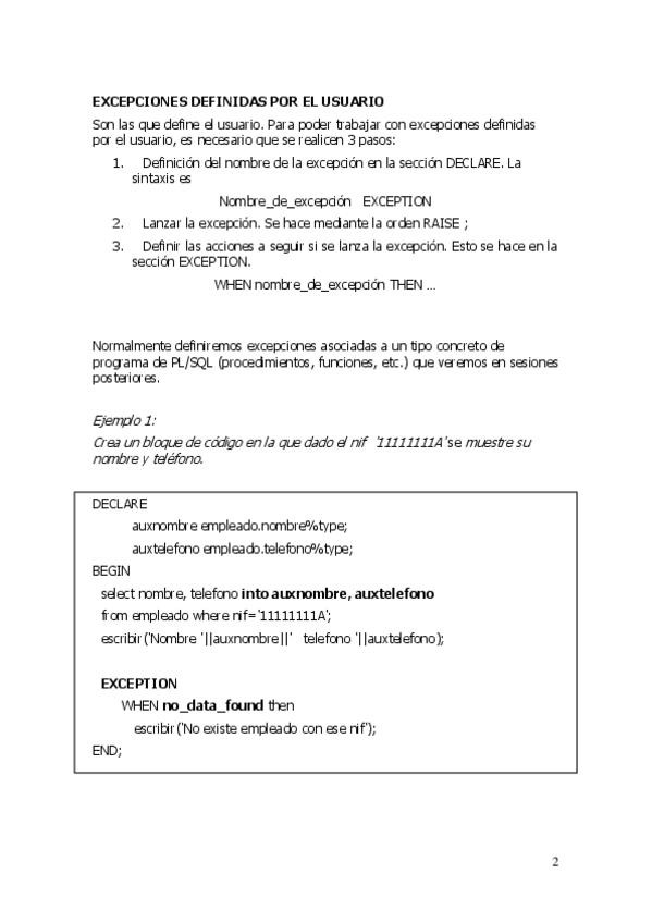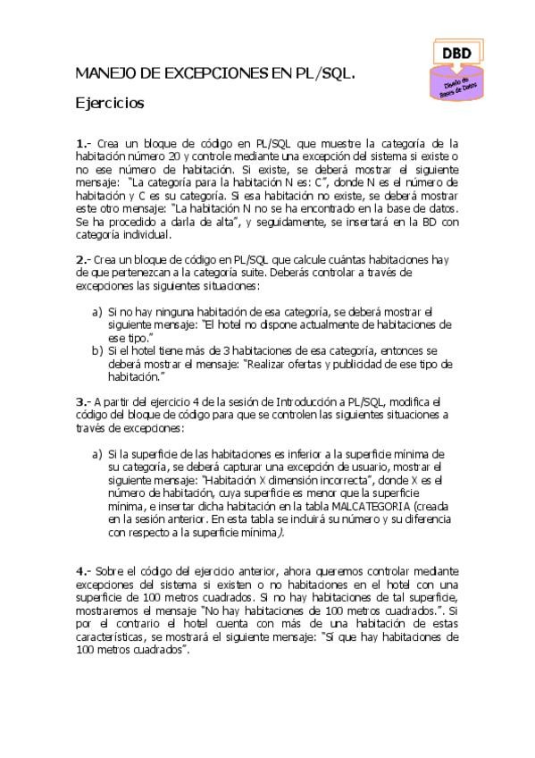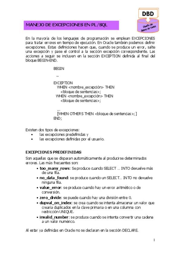 He publicado nuevos apuntes de 2º Diseño de Bases de Datos: ManejoExcepciones-PL-SQLEjercicios.pdf
