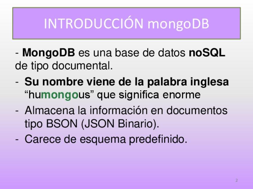 He publicado nuevos apuntes de 2º Diseño de Bases de Datos: MongoDBSentenciasVF-MMDD.pdf