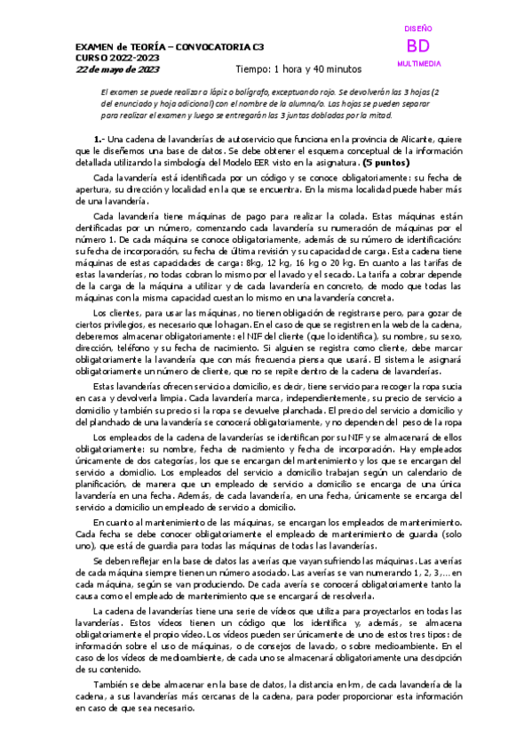 He publicado nuevos examenes de 2º DISEÑO DE BASES DE DATOS MULTIMEDIA: Ejercicios-examenes-practicas.pdf