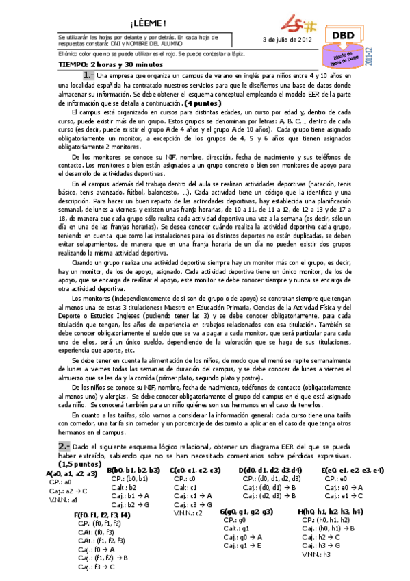 He publicado nuevos examenes de 2º DISEÑO DE BASES DE DATOS MULTIMEDIA: Julio-2012.pdf