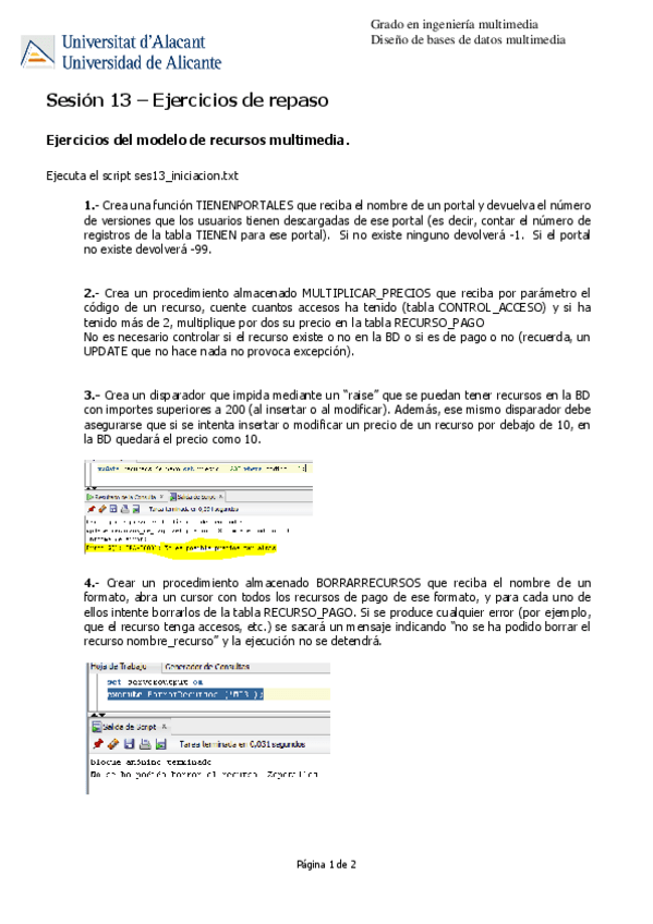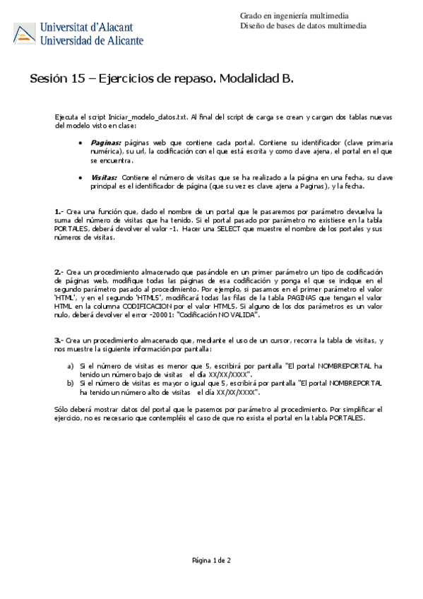 He publicado nuevos ejercicios de 2º DISEÑO DE BASES DE DATOS MULTIMEDIA: ses1320202021ejercicios-1.pdf