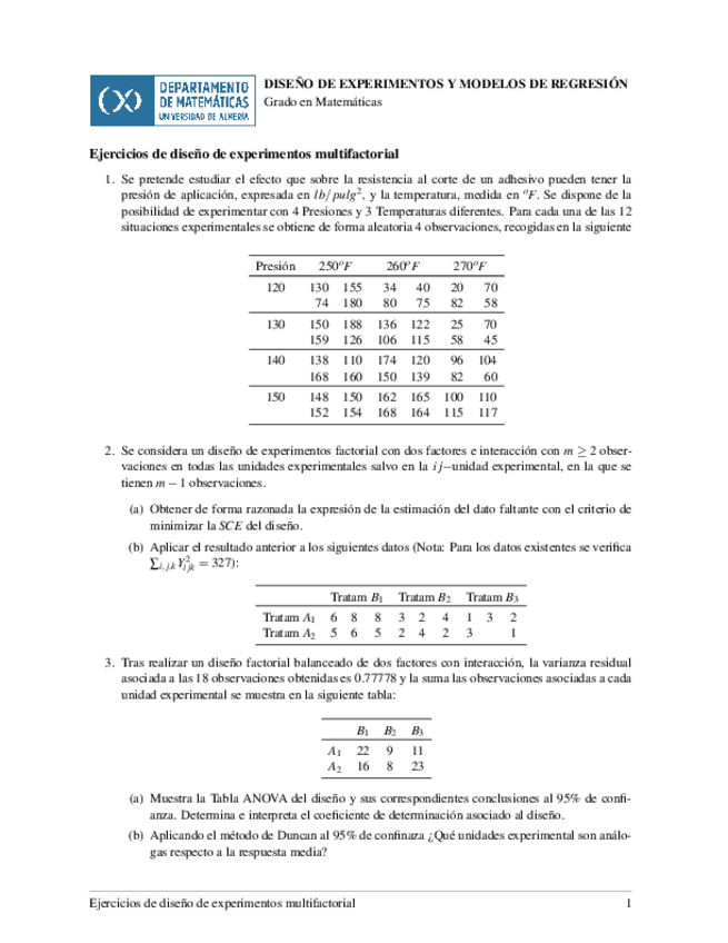 He publicado nuevos ejercicios de 4º Diseño de Experimentos y Modelos de Regresión: Relacion-multifactorial.pdf