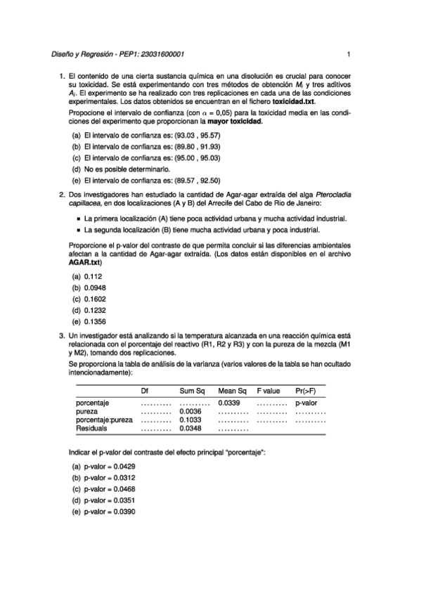 He publicado nuevos pec de 2º Diseño de Experimentos y Modelos de Regresión: PECS Regre