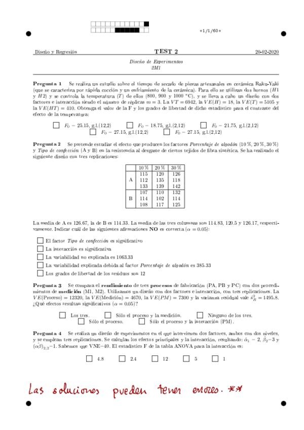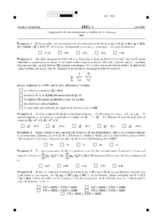 He publicado nuevos apuntes de 2º Diseño de Experimentos y Modelos de Regresión: ejercicios-de-examenT1.pdf