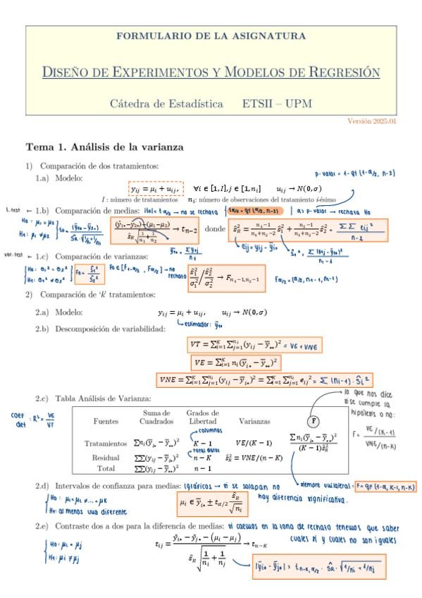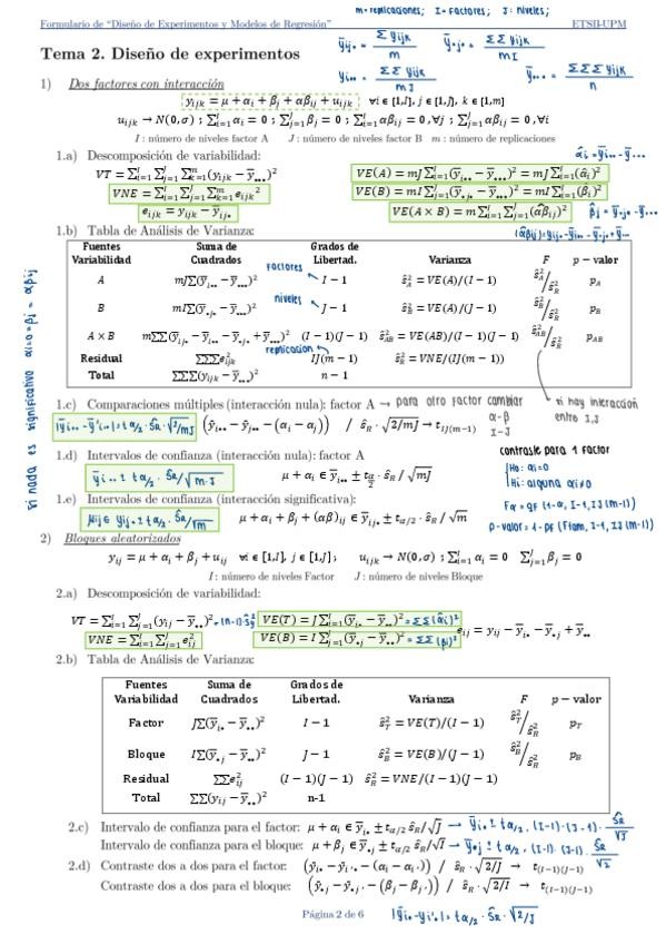 He publicado nuevos apuntes de 2º Diseño de Experimentos y Modelos de Regresión: formulario.pdf